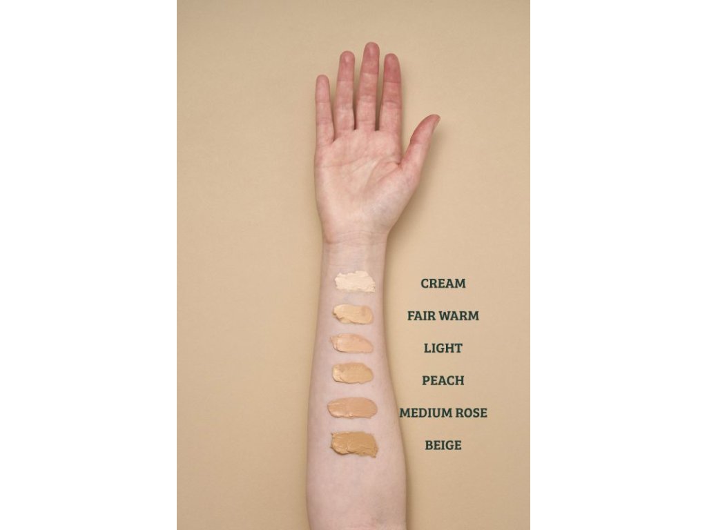 - Medium Rose – světlostřední až střední odstín s broskvově teplým podtónem. Nejprodávanější barva pro světlou až středně tmavou pleť.
