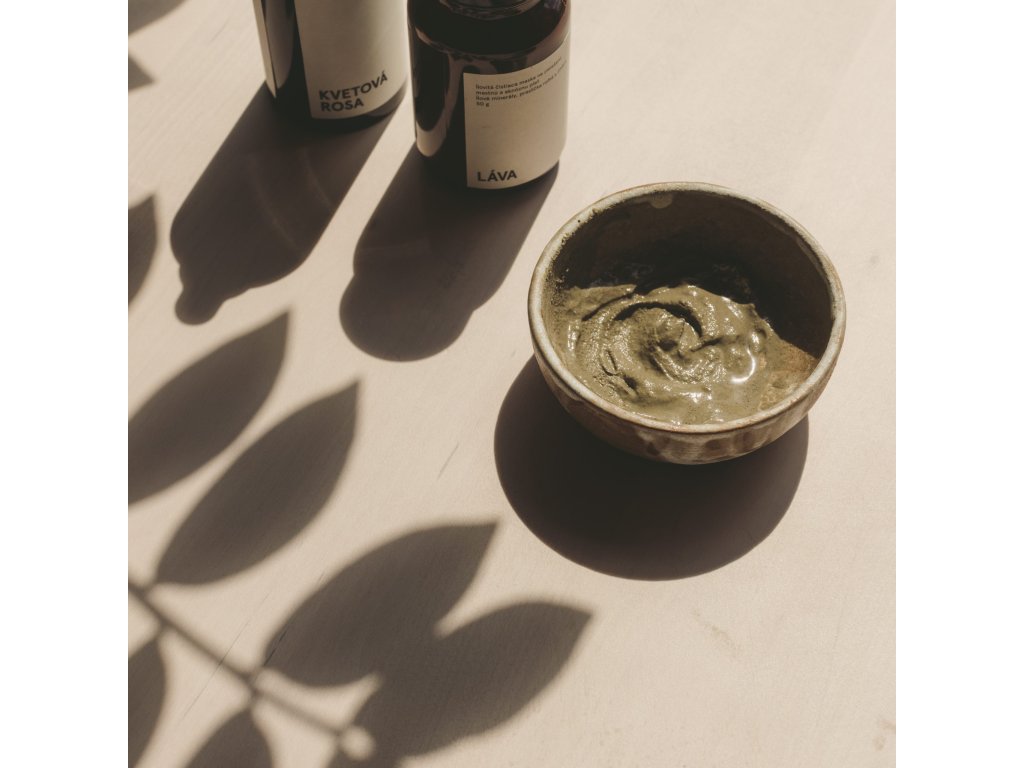 Masku připravíte k použití tak, že odeberete přiměřené množství a to smícháte s vodou. Použít můžete obyčejnou vodu z kohoutku, ale moc se přimlouváme za smíchání s hydrolátem, neboli vodou květovou.
